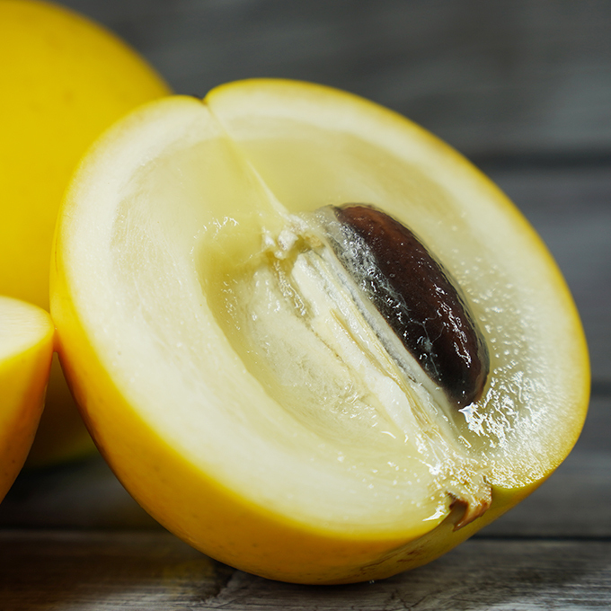 農友特選品種,果肉不水爛、不易黏嘴。黃金果Q彈如甜柿、具濃厚龍眼+蜂蜜香氣,採八分熟出貨,農藥無檢出,收貨冰涼後可立即安心食用。