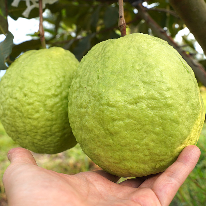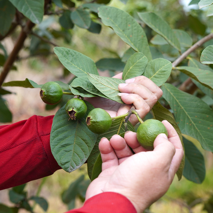 小農採用草生栽培,具獨門栽種技術,帝王芭樂肉厚、爽脆不軟爛,且具獨特甘蔗香氣,並堅持採八分熟在欉黃、退藥期後才採收,讓您食得開心、安心。