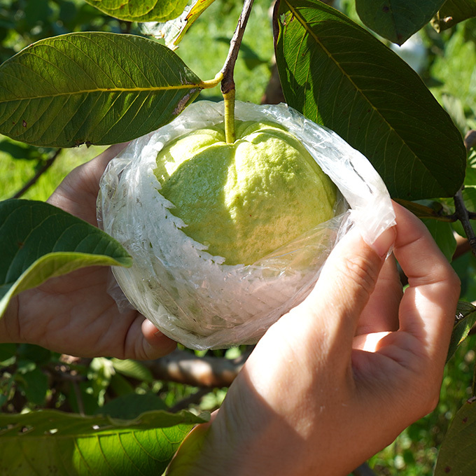 果園位於完全無工廠污染的田寮區,與田寮惡世界的頂級土質、水源保護區,再加上有機17年老師傅經驗,讓顆顆芭樂慢慢長大,籽小肉厚、口味清甜。