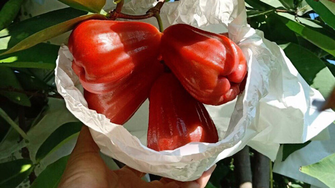 紫蜜蓮霧又稱子彈蓮霧,而六龜小農的紫蜜蓮霧採九分熟以上,疏掉4成果實,一枝條只留2包蓮霧,讓顆顆蓮霧都能吸收滿滿養分,在欉紅的紫蜜蓮霧糖度高、果肉清香脆甜,當日現採出貨。