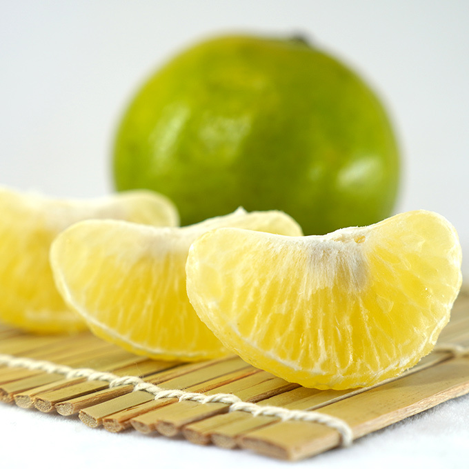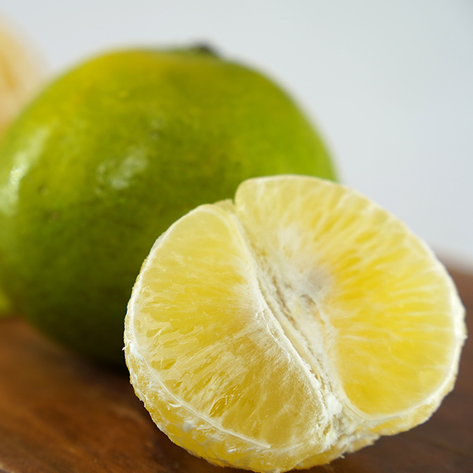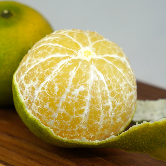 帝王柑是少數完全無酸味的柑橘,具獨特檸檬+柳丁香氣,但卻不刺鼻,風味清爽高雅,且肉細多汁。小農不使用增甜退酸劑,顆顆在欉黃採收。